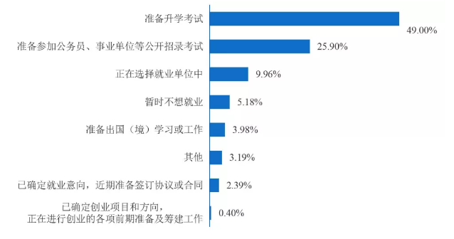 ·其次为拟考公(25.9%)和“正在选择就业单位中”(9.96%)。