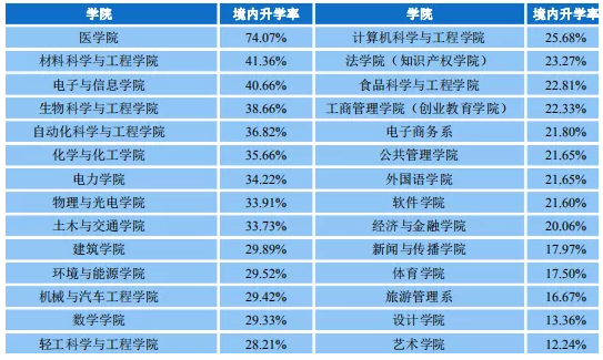 各院系国内升学率: