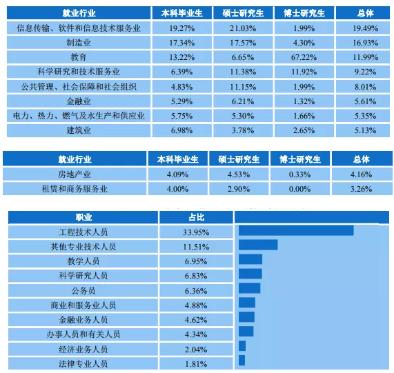 流向广东省内就业的占比分别为本科毕业生78.26%、硕士研究生79.74%、博士研究生60.93%。