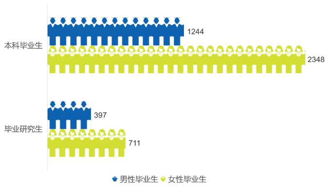 其中男性毕业生1641人,占比34.91%;女性毕业生3059人,占比65.09%。男女比例为0.54:1。