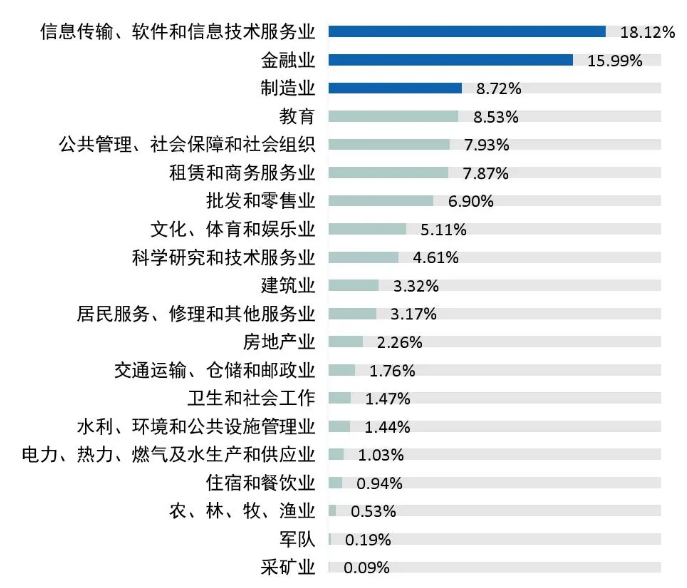 2020届毕业生就业行业集中,位列前三的是“信息传输、软件和信息技术服务业”(占比18.12%)、“金融业”(占比15.99%)、“制造业”(占比8.72%),学校办学与市场需求契合度高。