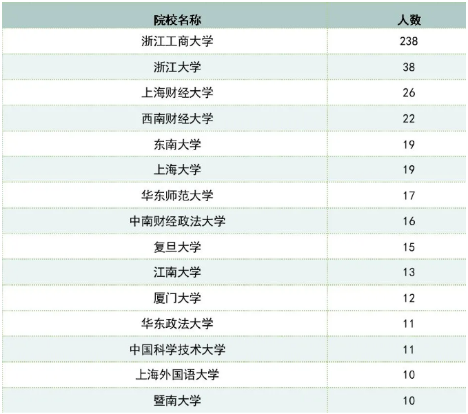 毕业生主要国内升学高校名单(升学人数≥10人)
