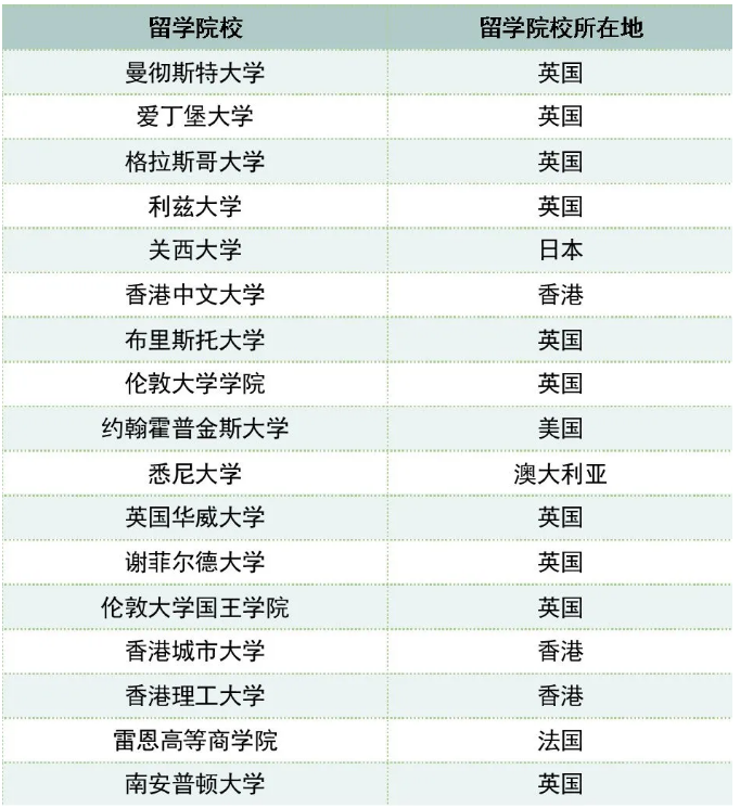 毕业生出国(境)主要留学院校(升学人数≥4人)