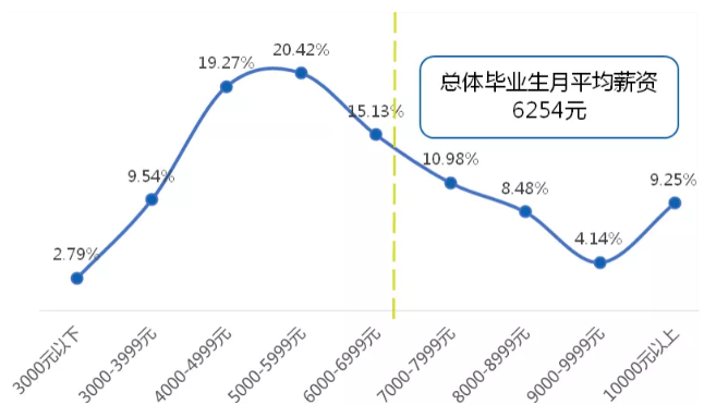 薪资水平持续看涨,学校2020届毕业生总体平均月薪为6254元。本科毕业生的平均月薪为5809元,毕业研究生的平均月薪为7893元。均高于2019届本科生(5696.28元)和研究生(7830.94元)的月均薪资水平。