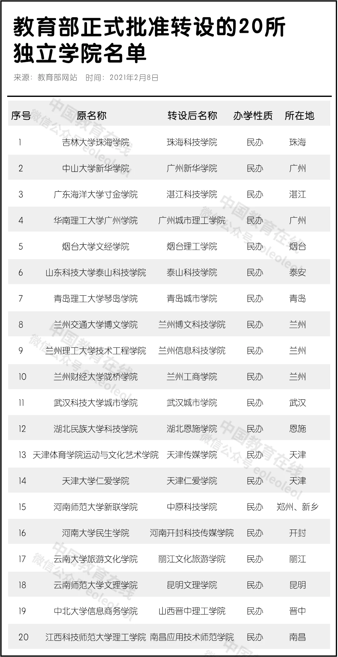 正式批准!20所独立学院更名转设,5所大学终止办学