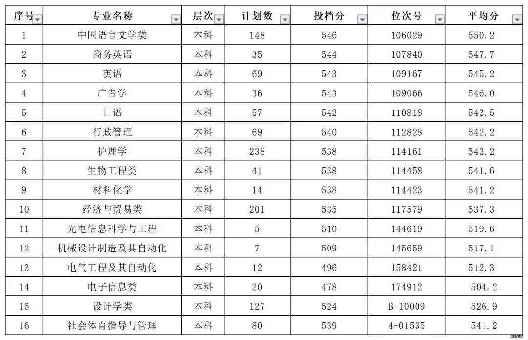 2020年湖州学院(原湖州师范学院求真学院)浙江省分专业录取分数线