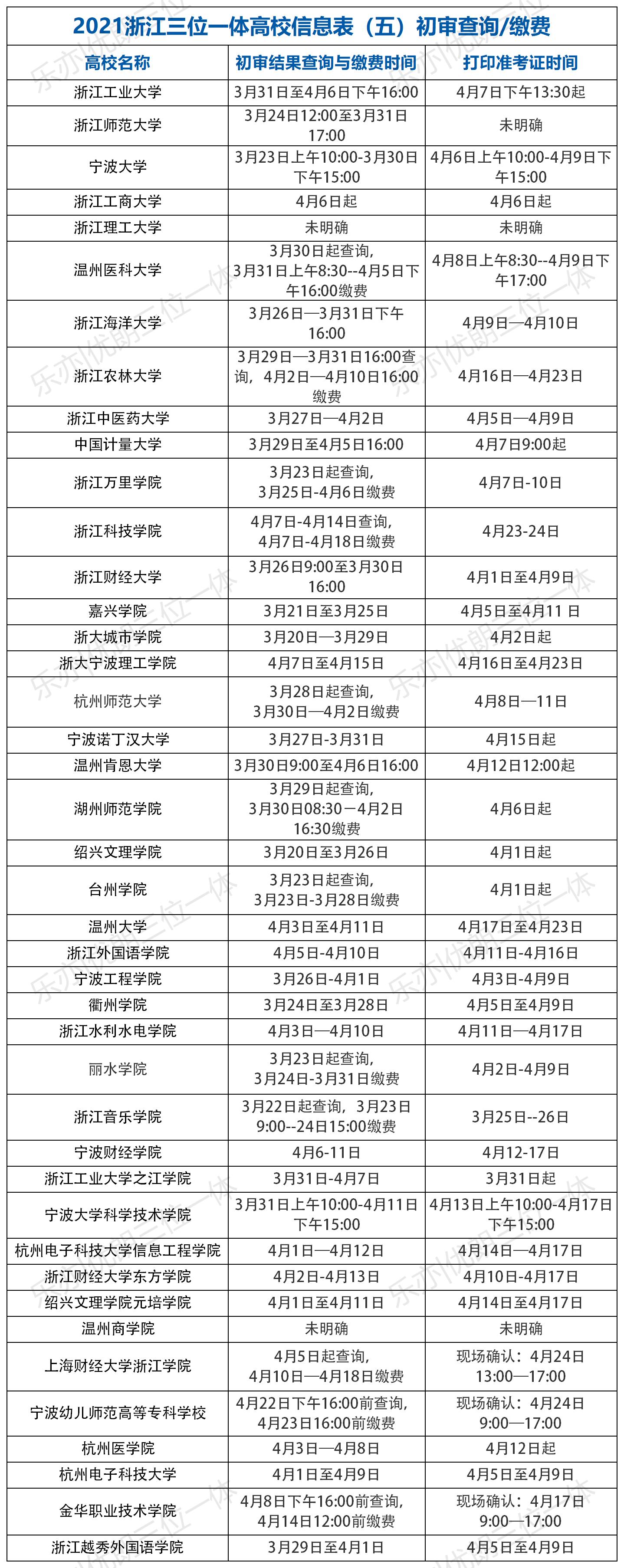 2021年三位一体院校初审查询/缴费时间汇总表~已有三所高校初审结果公布!