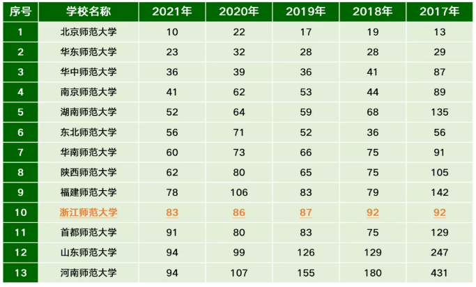 浙师大在2021校友会中国大学排名中位列第83位,较2020年上升3位