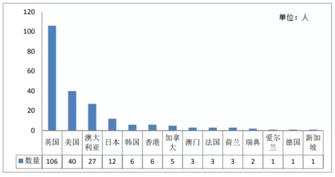 留学选择较多的学校为英国 布里斯托大学(25 人)、格拉斯哥大学(17 人)、澳大利亚悉 尼大学(12 人)等。