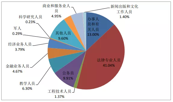 在职位类型上,除法律 专业人员外,办事员、公务员、商业和服务业人员占比较多, 多元化就业趋势明显。