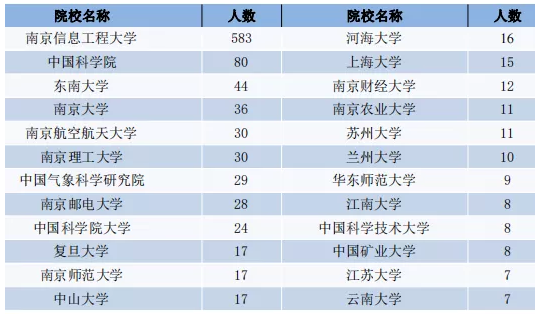 主要流向了南京信息工程大学(583 人),较上届增加105人。