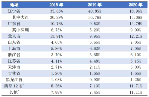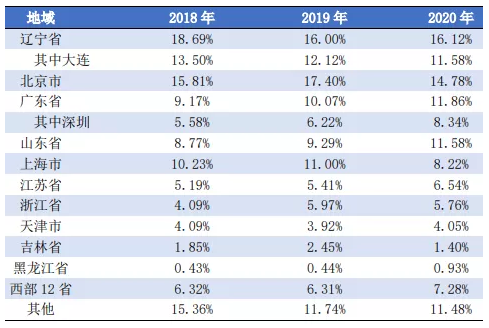 留在辽宁、大连的比例为最高, 其余主要流向进入北京、上海、广东、山东、江苏、浙江。