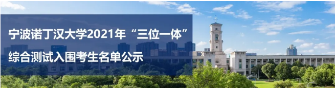 2021年宁波诺丁汉大学“三位一体”综合测试入围考生名单公示