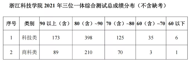 浙江科技学院2021年三位一体综合测试成绩现予以公布。