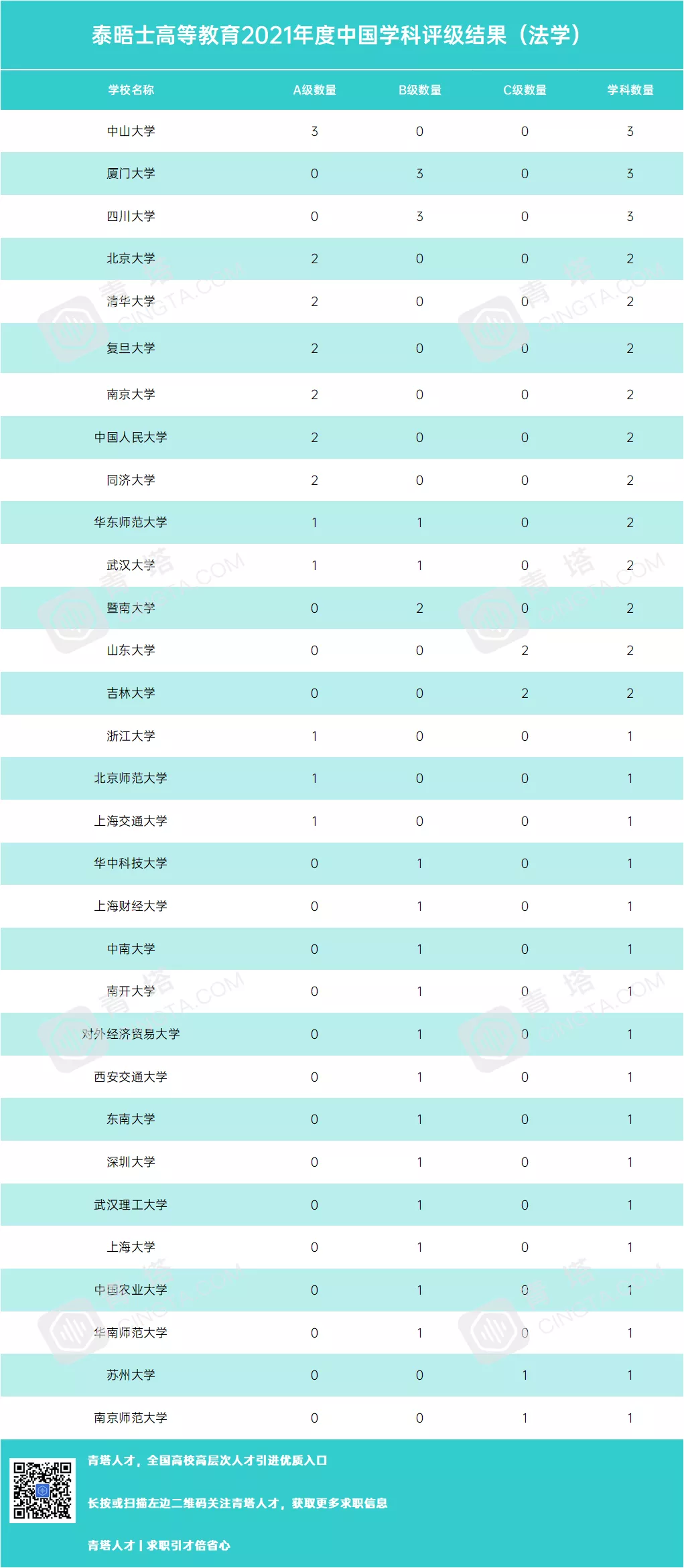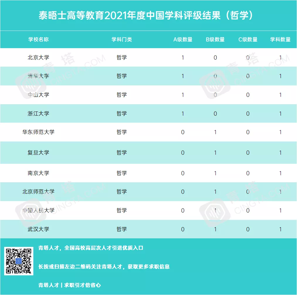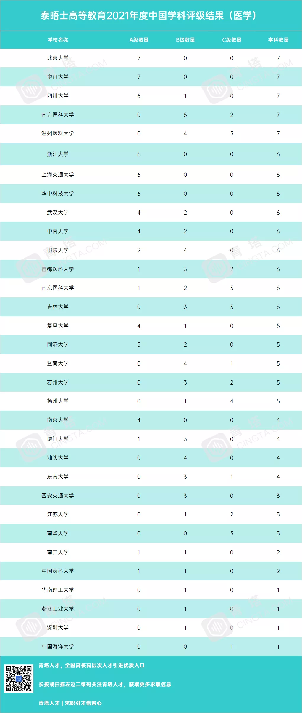 5月11日,泰晤士高等教育发布2021年度中国学科评级结果。今年的评级涵盖90所中国大陆高校,以及全球1420所院校。评分采用中国教育部的学科分类法,涵盖89个科目,采用A+ 至C–评分系统。
