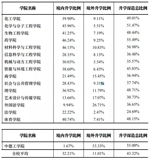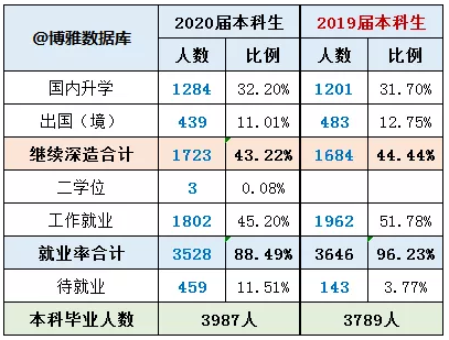 本科毕业生有 1723 人在海内外高校、院所继续 深造,占本科毕业生总数的 43.22%。