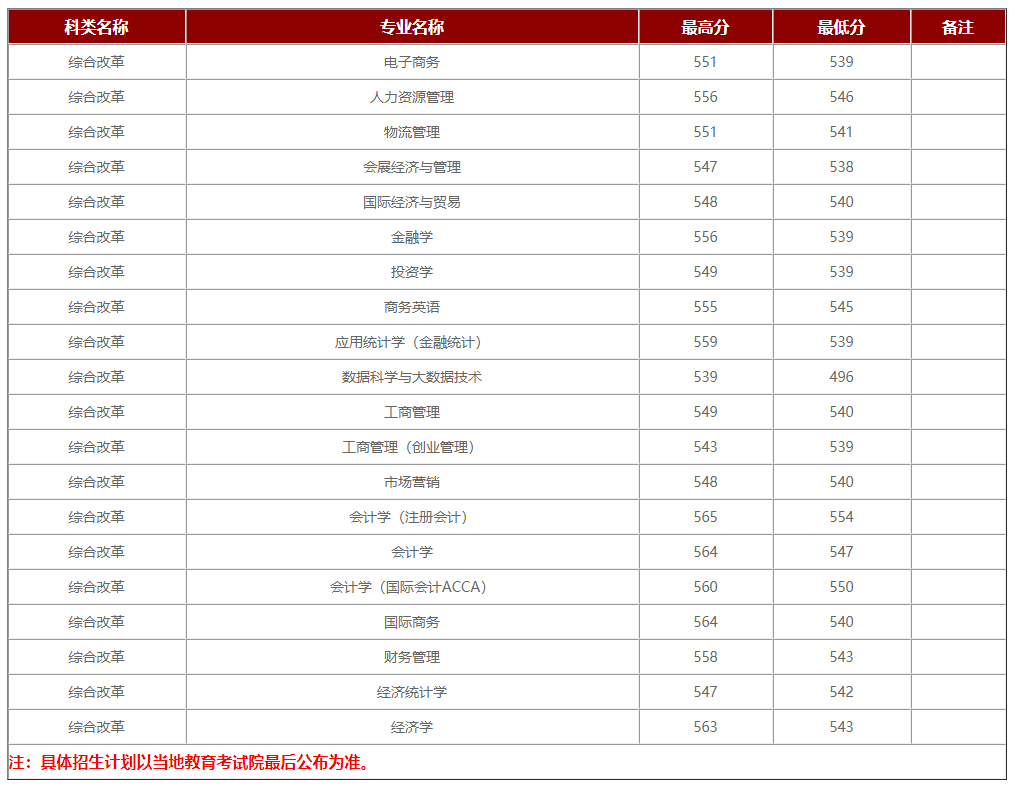 2020年上海财经大学浙江学院浙江省分专业录取分数线