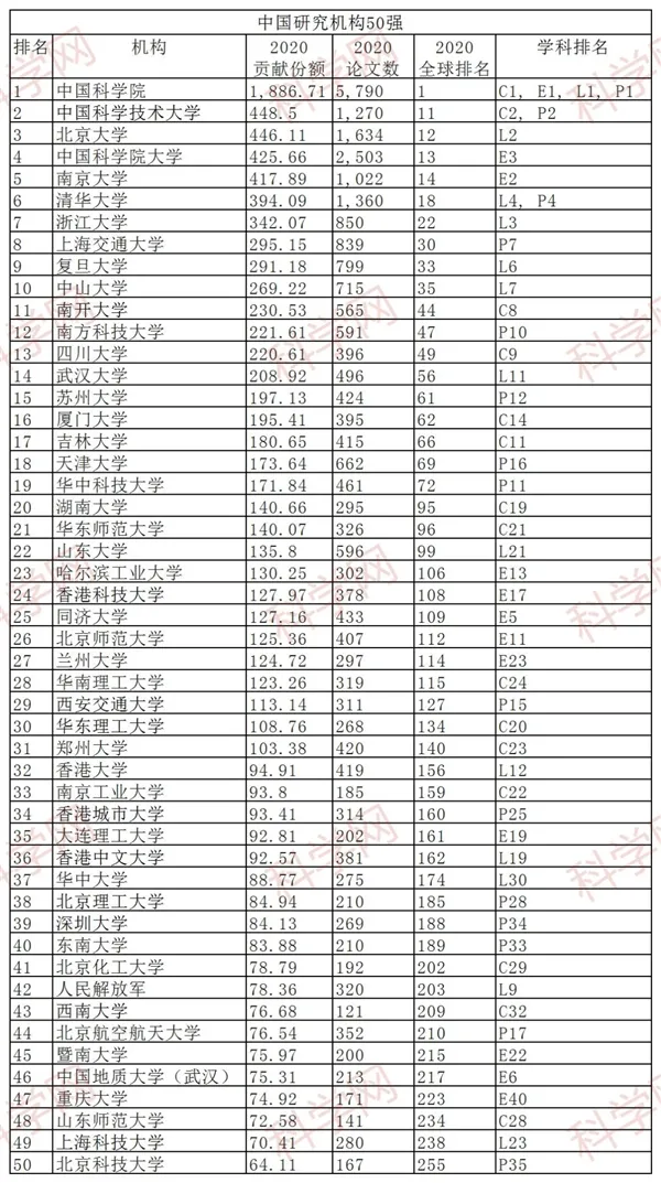 5月26日,全球顶级科研期刊《自然》发布“2021中国自然指数”增刊。该刊介绍了中国在自然科学领域最新的科研产出情况,包括中国50强研究机构榜单。根据2020年的文章贡献份额,中国位居前十位的研究机构为:中国科学院、中国科学技术大学、北京大学、中国科学院大学、南京大学、清华大学、浙江大学、上海交通大学、复旦大学和中山大学。上海交通大学排名全球第30。