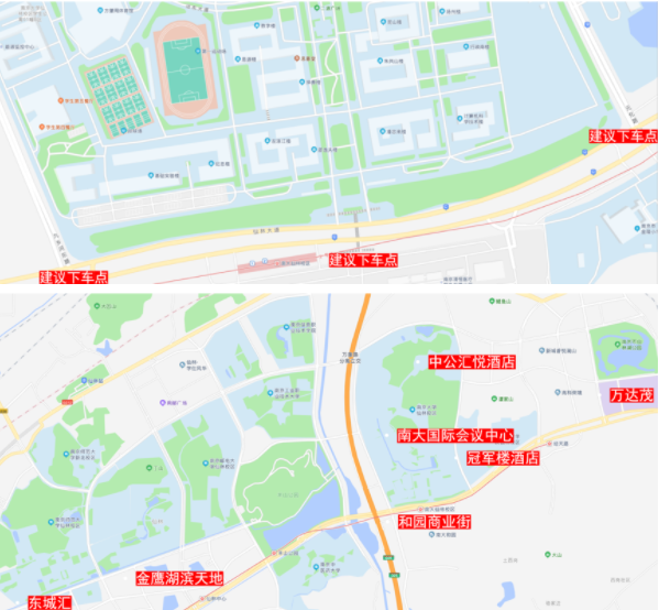 3.考点前道路实行交通管制,送考车辆即停即走,请服从交警指挥。为避免拥堵,请关注考点前仙林大道路况,建议送考人员在校门对面(地铁南大仙林校区站)或元化路、九乡河东路路口停车,考生步行至校门。