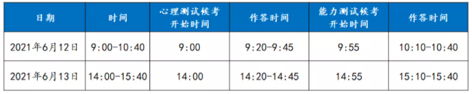 能力测试时间:2021年6月14日10:10-11:50(9:55开始候考)
