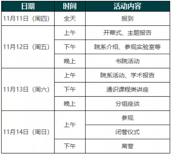 (二)营员无需缴纳报名费用,在营期间食宿及相关活动支出由我校负责。