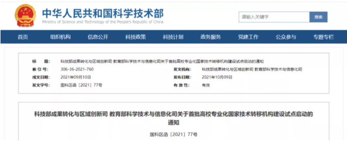 近日,科技部成果转化与区域创新司、教育部科学技术与信息化司联合发布《关于首批高校专业化国家技术转移机构建设试点启动的通知》(国科区函〔2021〕77号),经试点认定条件遴选、主管部门和专业机构推荐、专家咨询评议等工作程序,上海交通大学入选首批20所试点高校之一。