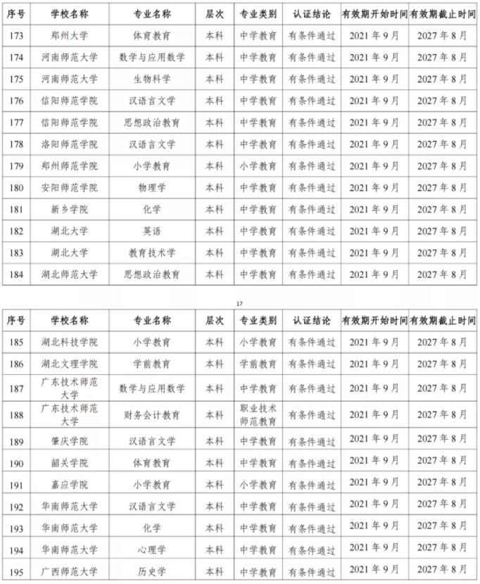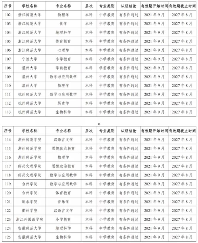教育部公布2021年师范类专业通过认证名单|浙江省共有10所
