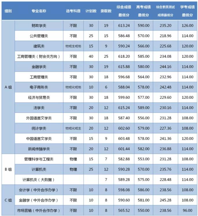 2021年浙江财经大学浙江分专业录取分数线