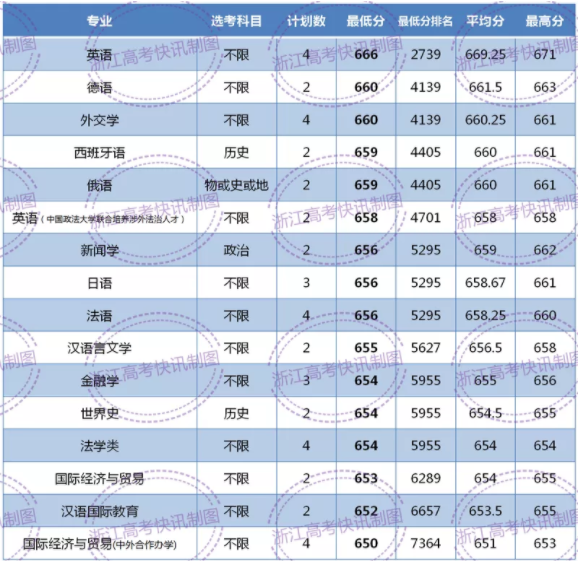 2021年北京外国语大学浙江分专业录取分数线