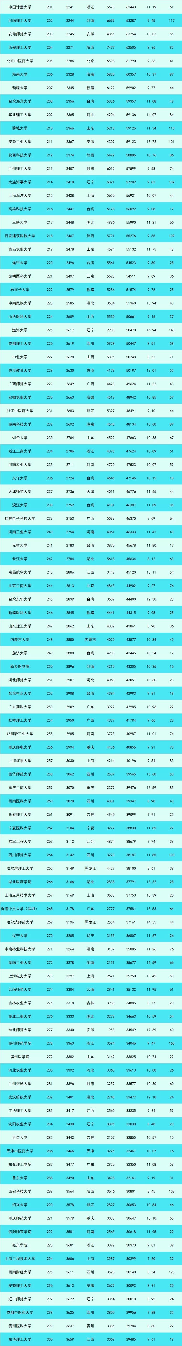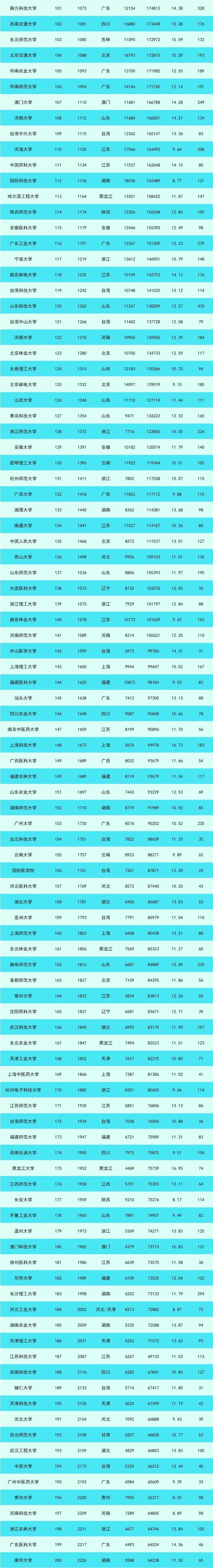 中国上榜高校数为419所(大陆353,台湾55,香港8,澳门3),与2021年9月总数相比增加了11所。其中,大陆新增8所,台湾新增2所,澳门新增1所。