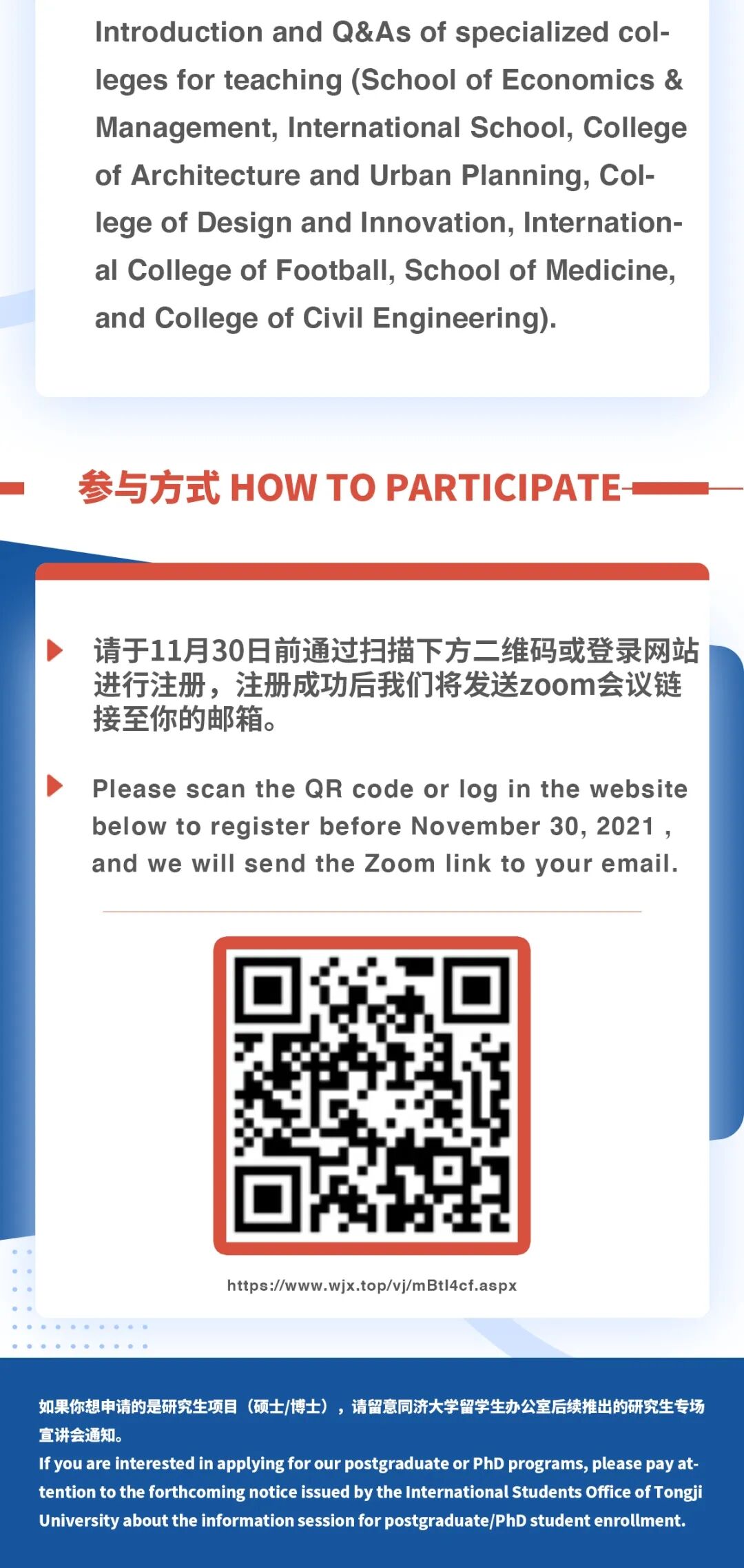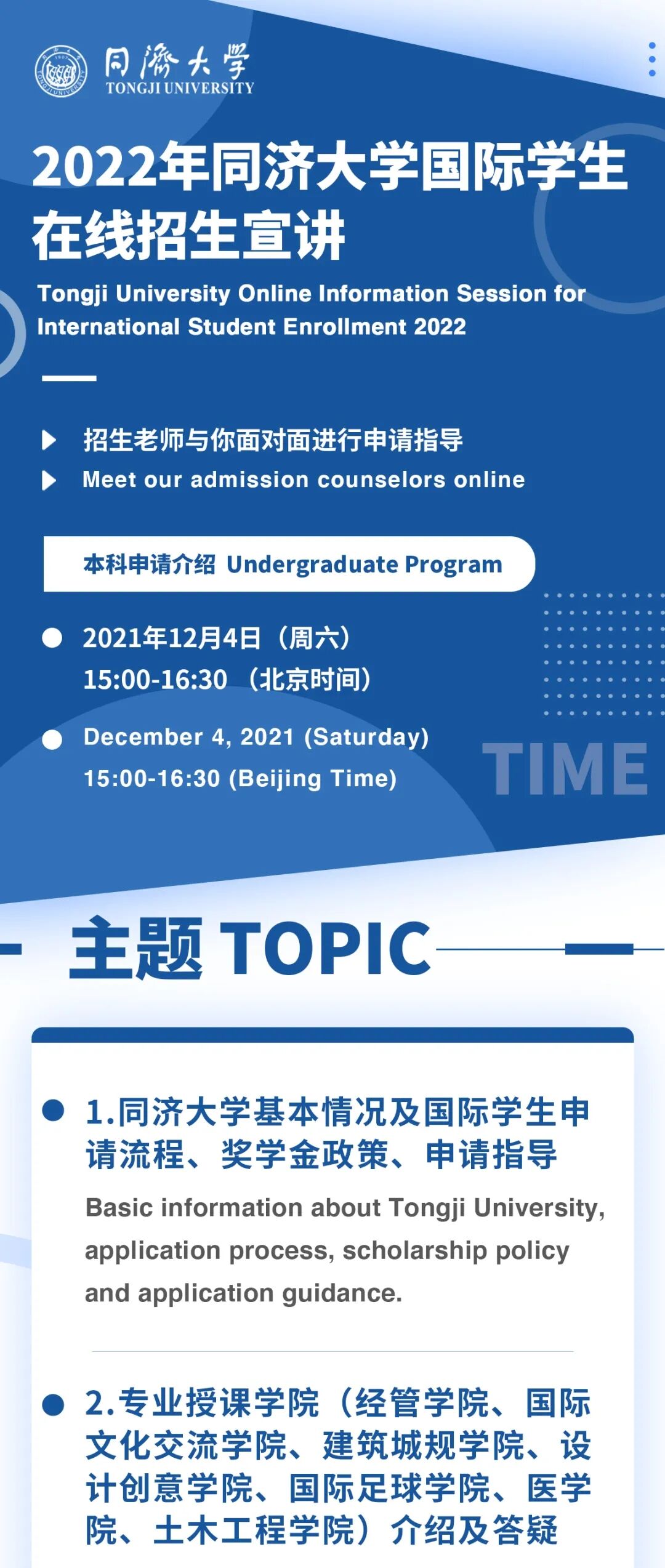 同济大学2022年国际学生申请时间表及本科项目在线宣讲活动安排