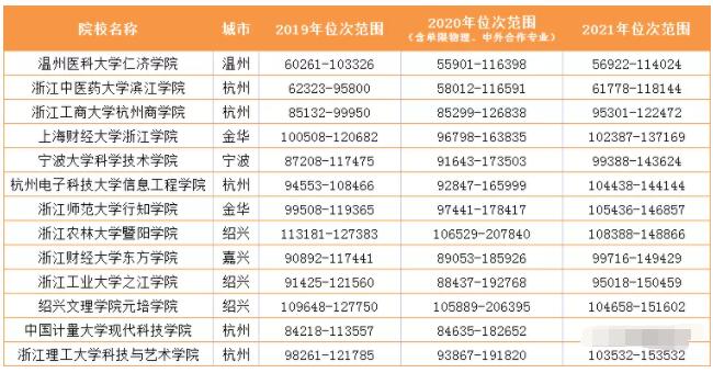 杭州师范大学钱江学院、浙江海洋大学东海科学技术学院、同济大学浙江学院