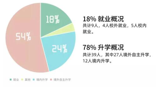 统计与数据科学系2021届本科总毕业人数50人,专业为统计学,共有96%的统计系本科毕业生落实升学就业,18%学生选择就业,78%学生升学,其中境外自主升学占比54%,境内升学占比24%。