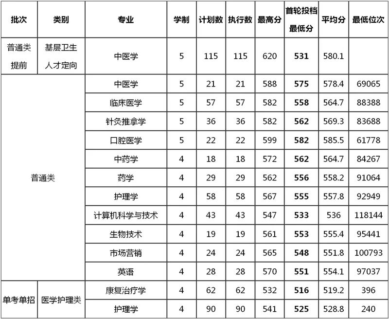 注1:首轮投档最低分是指首次投档满额时的最低投档分。
