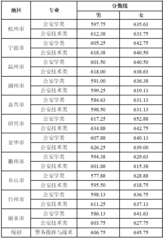 2022年浙江警察学院“三位一体”综合评价招生政治考察分数线