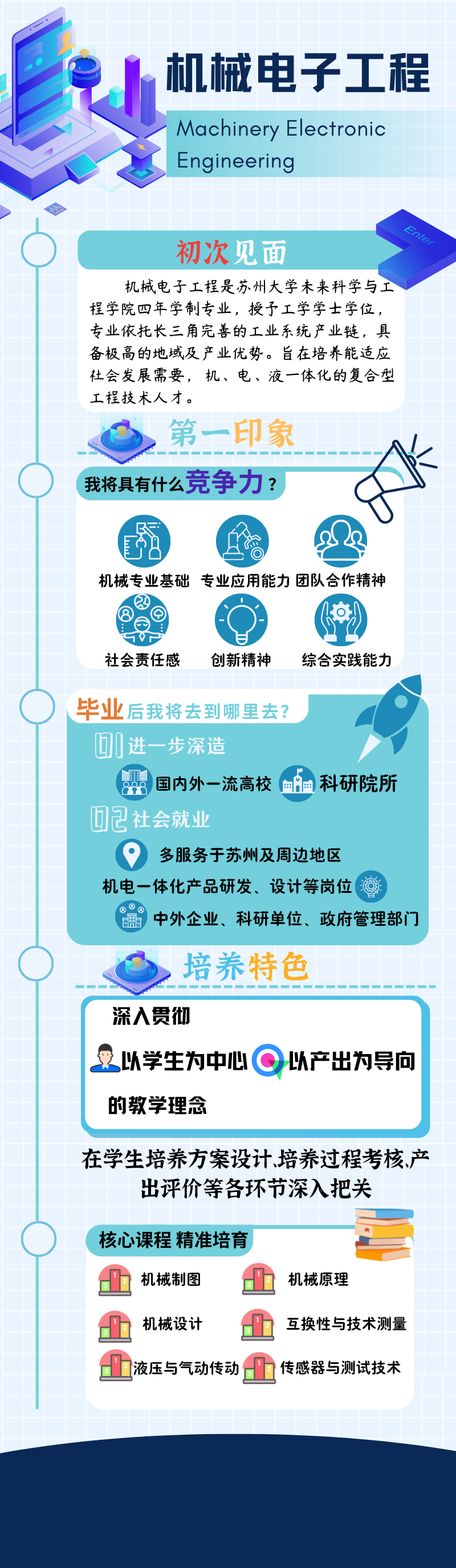 就业方向:就业的学生多服务于苏州及周边经济发达地区,供职于机电一体化产品研发、设计、制造、管理等方面的中外企业、科研单位、政府管理部门等。