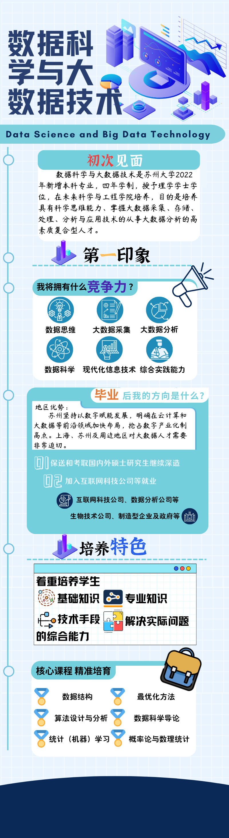 专业前景:信息化时代,数据成为生产要素和社会财富甚至国家间竞争的关键资源。苏州坚持以数字赋能发展,明确在云计算和大数据、人工智能、区块链、智能网联汽车、数字电竞等前沿领域加快布局,抢占数字产业化制高点。苏州地区有500余家大数据企业,有10个大数据产业平台。上海、苏州及周边地区对大数据人才需要非常迫切。