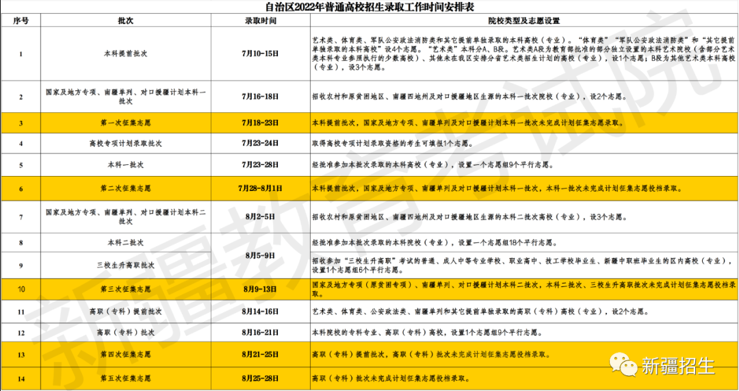 7月12日:本科提前批B院校下载考生第一志愿信息,并在规定时限内完成第一志愿录取;前一志愿完成录取后,公布剩余招生计划,网上征集考生志愿;院校依次对后续志愿考生进行录取。
