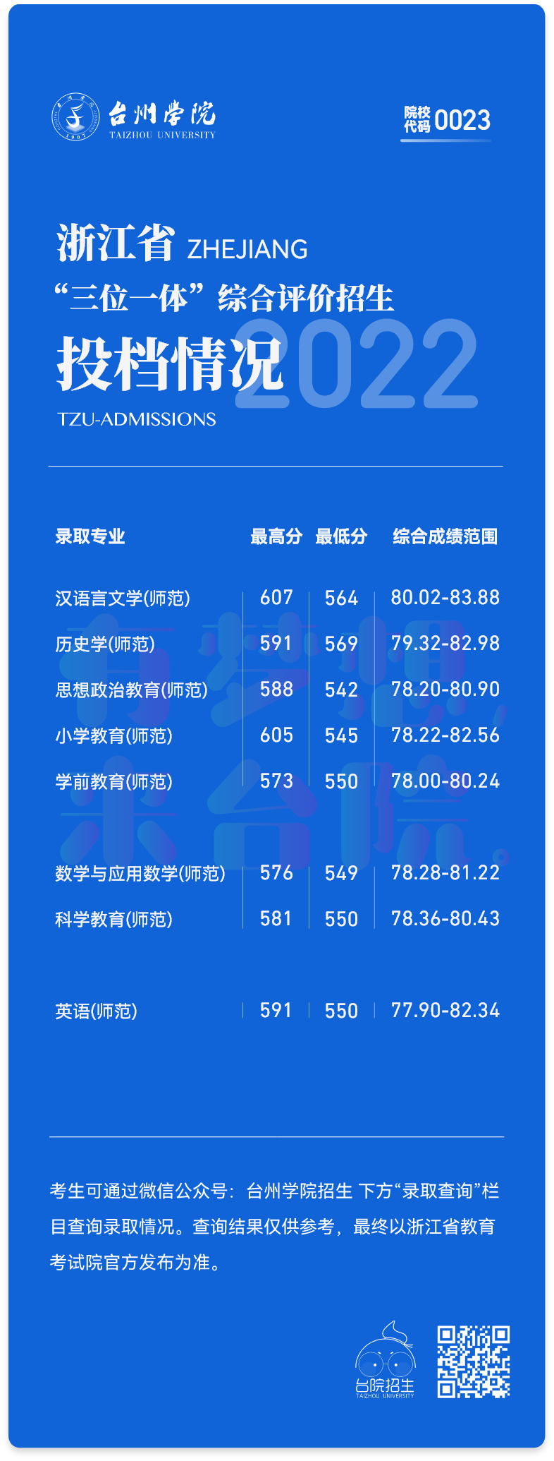 台州学院浙江省2022年『三位一体』综合评价招生录取结束,考生17时起可查询录取信息