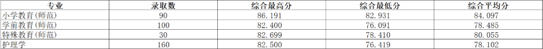 从录取情况看,生源质量稳步提升。师资定向录取考生中,高考文化最高分为660分,对应位次号4305名;高考文化分对应位次号列全省前10000名的共21人,创历史新高。基层卫生人才定向录取考生的高考文化平均分为611分,生源质量提升显著。“三位一体”各专业高考文化分较去年普遍提升,“高素质复合型硕士层次高中教师培养试点”综合最低分接近去年平均分,高考文化分对应位次号列全省前10000名的共20人,整体生源质量稳步提升。