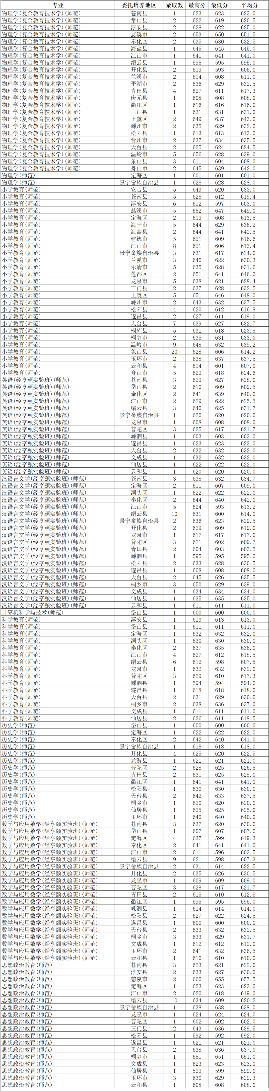 杭州师范大学2022年师资定向培养招生录取情况