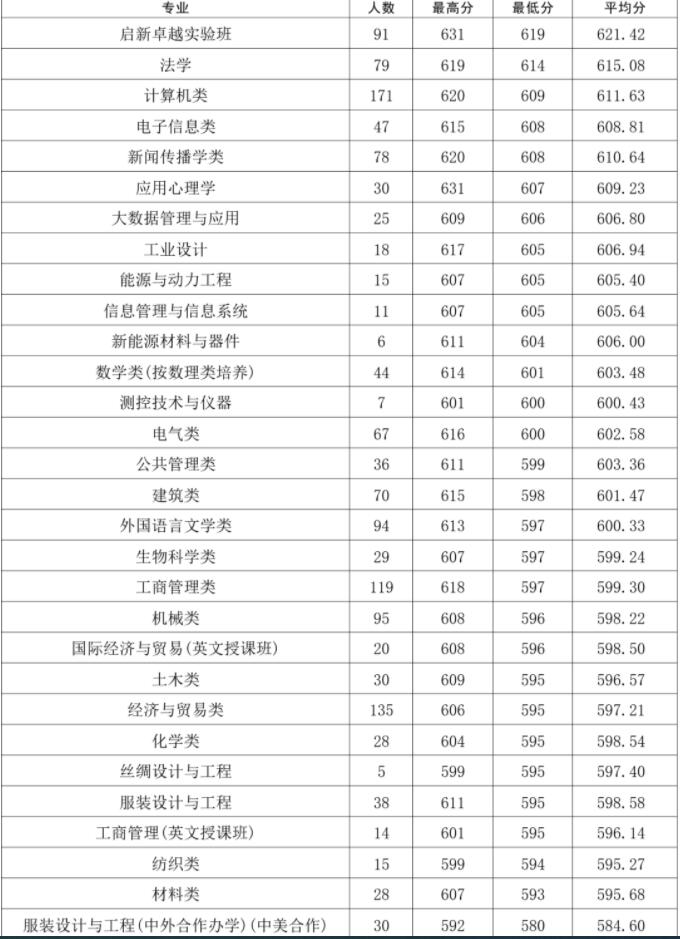 2022年浙江理工大学浙江分专业录取分数线