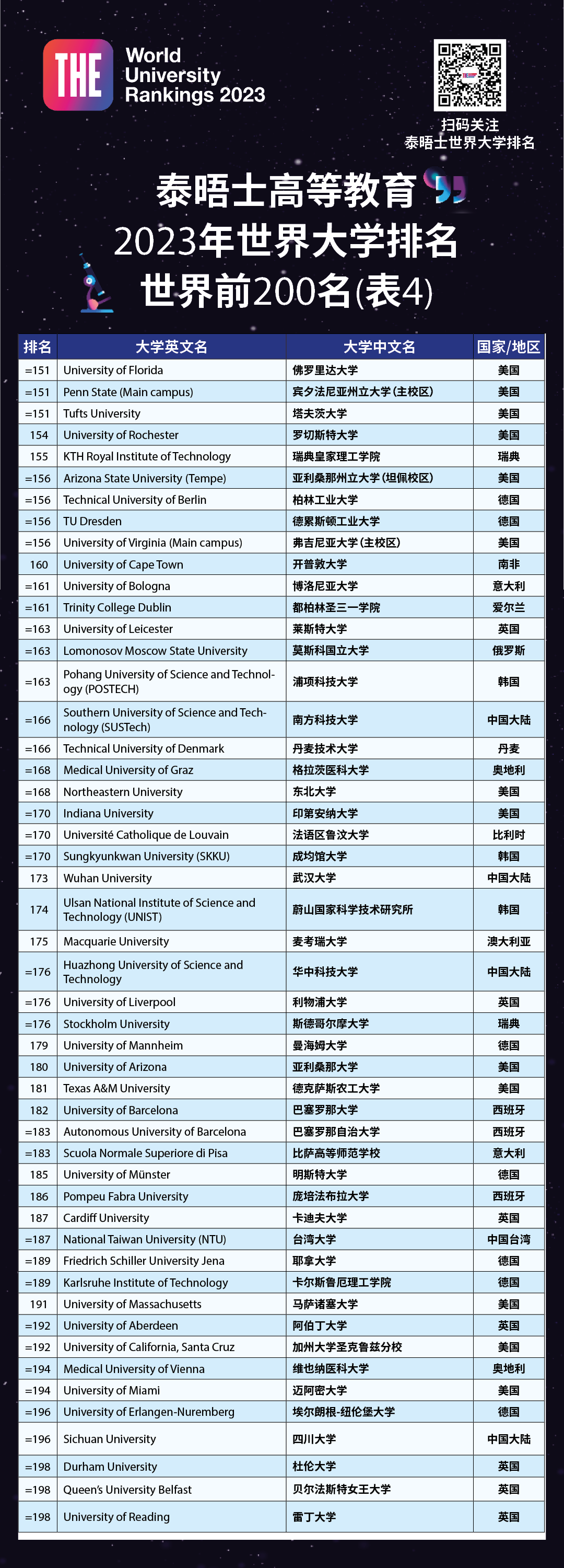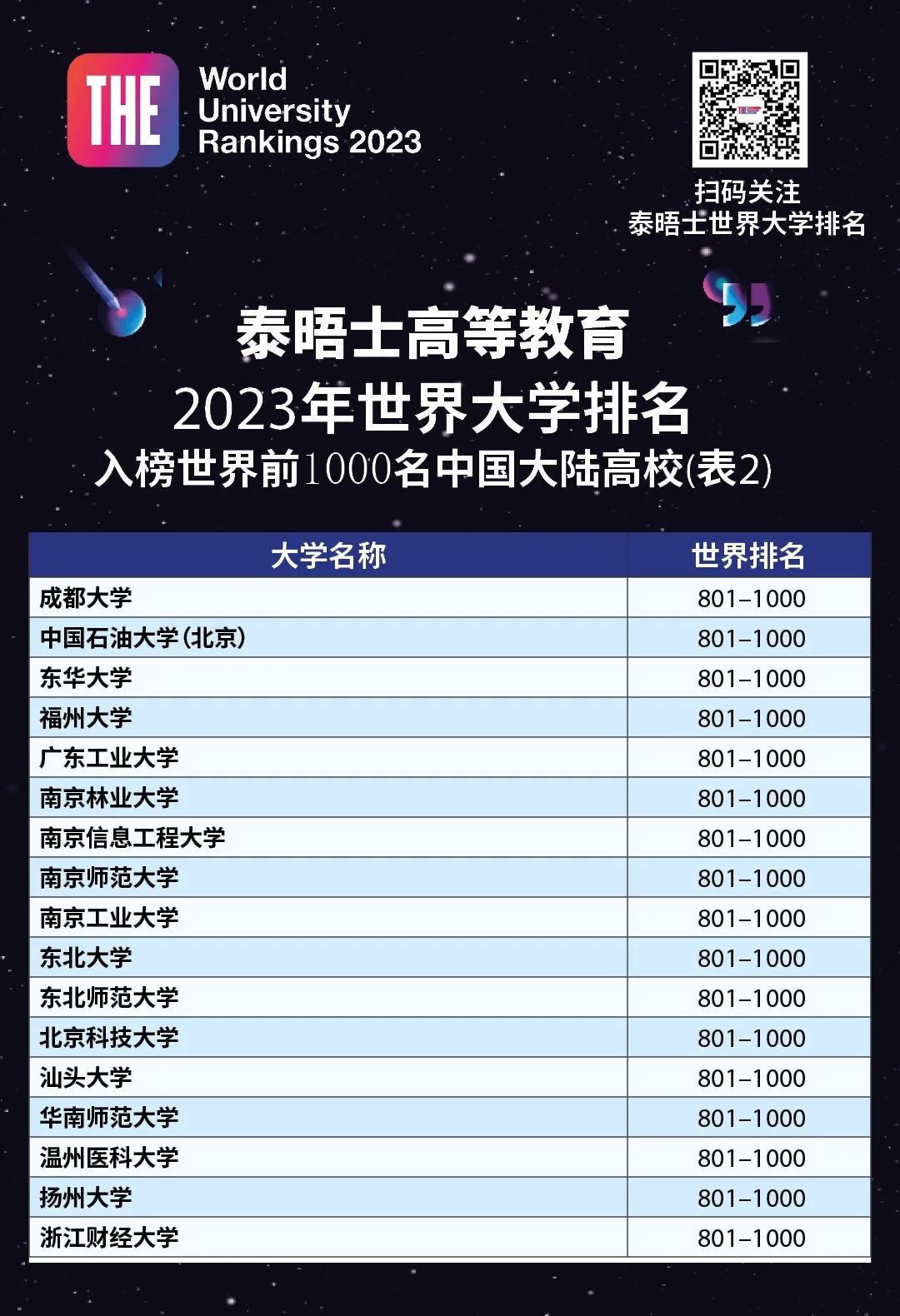 泰晤士高等教育2023年世界大学排名正式揭晓!快来看看中国大陆的高校表现吧!