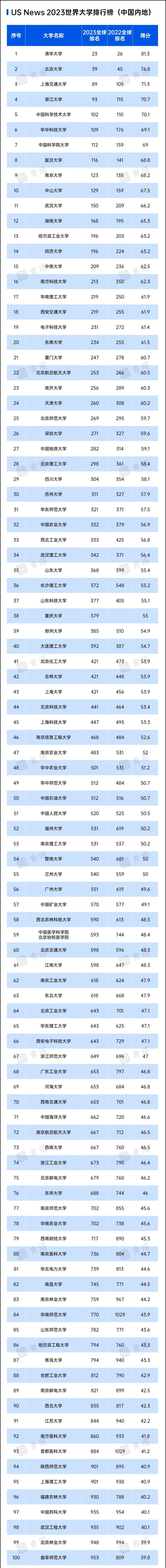 10月25日,US News发布2023世界大学排行榜,涉及85个国家,超过40个学术专业领域。