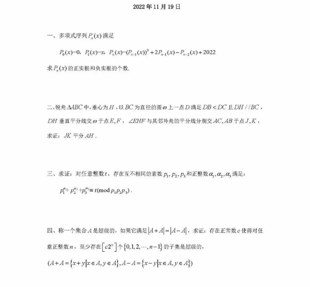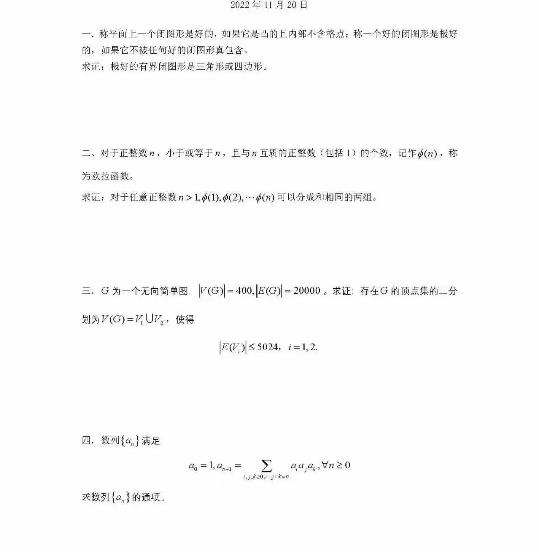 北京大学2022年优秀中学生数学学科探究拓展活动试题(全)
