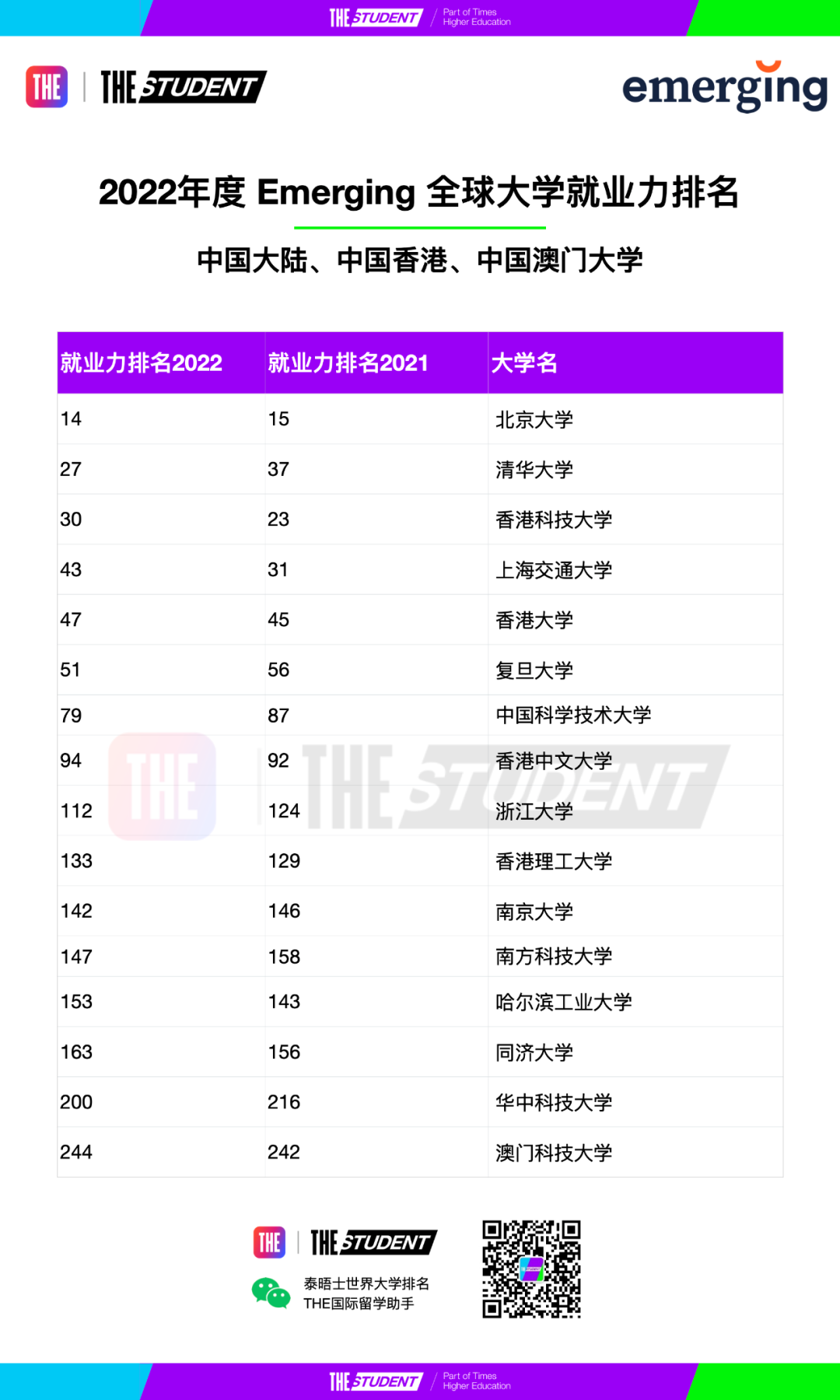 2022年度全球大学就业力排名新鲜出炉:4所港校跻身榜单,11所大陆高校入选