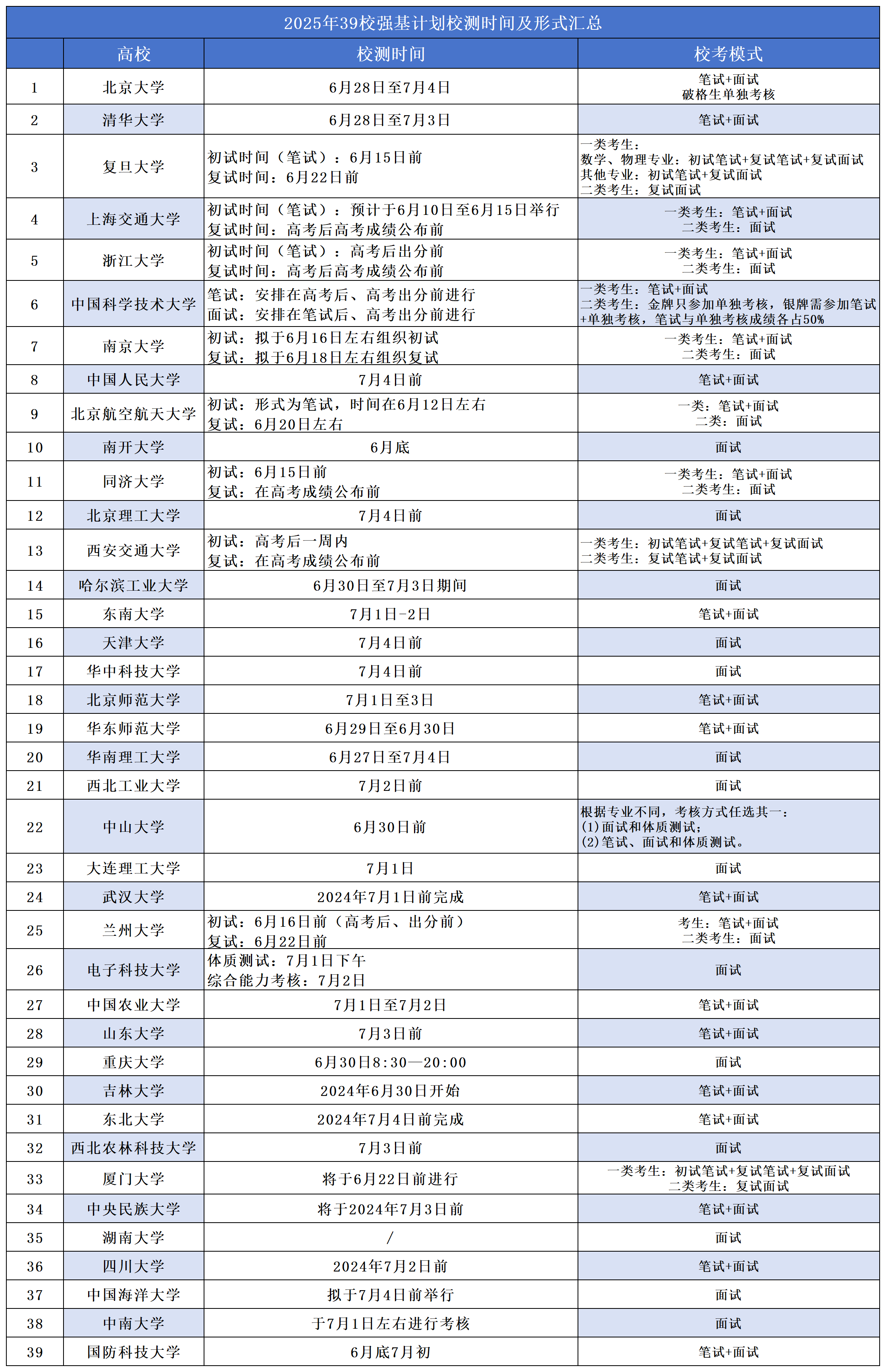 2025年39所985高校强基计划校测时间及形式汇总!