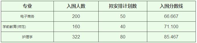 2.学前教育(师范)、电子商务、护理学专业入围分数线、入围人数及拟安排计划数