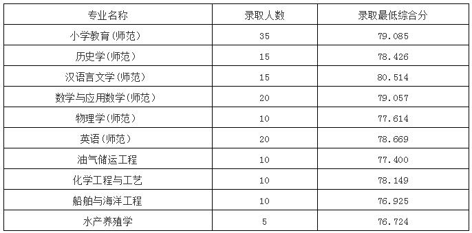浙江海洋大学还有2018年三位一体招生录取已结束,录取150人,录取考生中最低综合分如下: