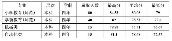 注:小学教育(师范)专业最低综合成绩79分,其中综合成绩并列考生最低测试成绩84分。